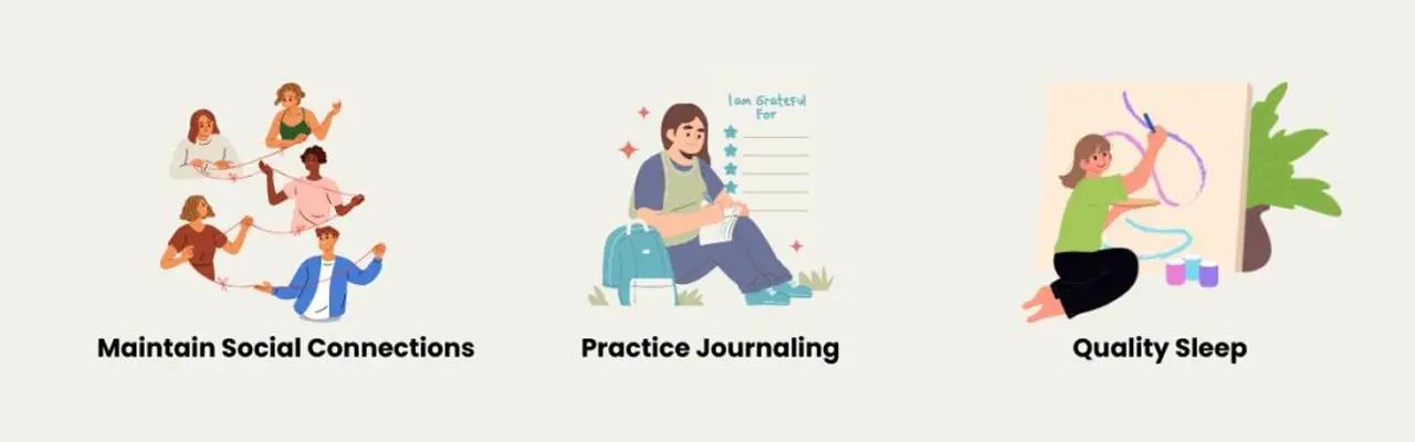ကျေးဇူးတင်စရာများကို ချရေးပါ (Gratitude Journal): နေ့စဉ် အိပ်ရာမဝင်မီ ကျေးဇူးတင်စရာ တစ်ခု သို့မဟုတ် နှစ်ခုကို ချရေးပါ။ ၎င်းသည် စိတ်ကို အကောင်းမြင်စိတ် ပိုမို ဖြစ်ပေါ်စေသည်။